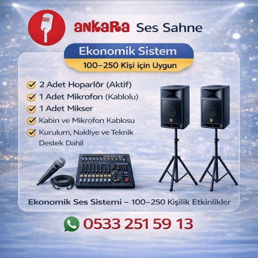 Ankara’da ses sistemi kiralama hizmetleri, organizasyonun kalitesini doğrudan belirleyen en önemli unsurlardan biridir. Ankara Ses Sahne olarak; düğün, konser, kurumsal etkinlik, açılış ve özel organizasyonlar için profesyonel ses sistemi kiralama çözümleri sunuyoruz. Alanın büyüklüğüne, etkinliğin türüne ve katılımcı sayısına göre en doğru ses sistemini planlayarak net, güçlü ve dengeli bir ses deneyimi sağlıyoruz.